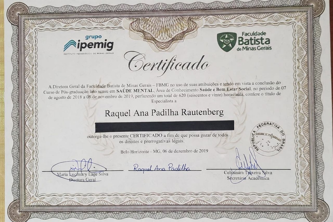 Raquel Ana Padilha é psicóloga, formada pela FAMEBLU em 2015, com inscrição no CRP 12/16523. Possui pós-graduação em Saúde Mental e Coletiva, além de formações em Avaliação Psicológica, EMDR e Psicopatologia da Infância e Adolescência.